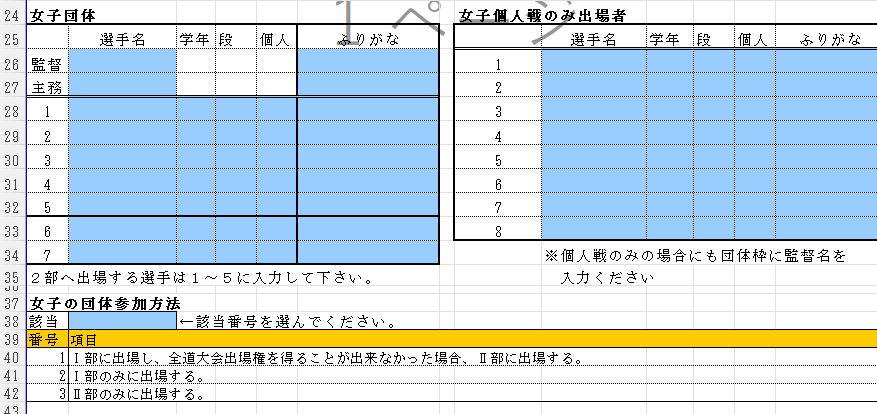 2)国体予選会に限り、男女とも出場者は上から順に強い順に記入(入力)することになっています。